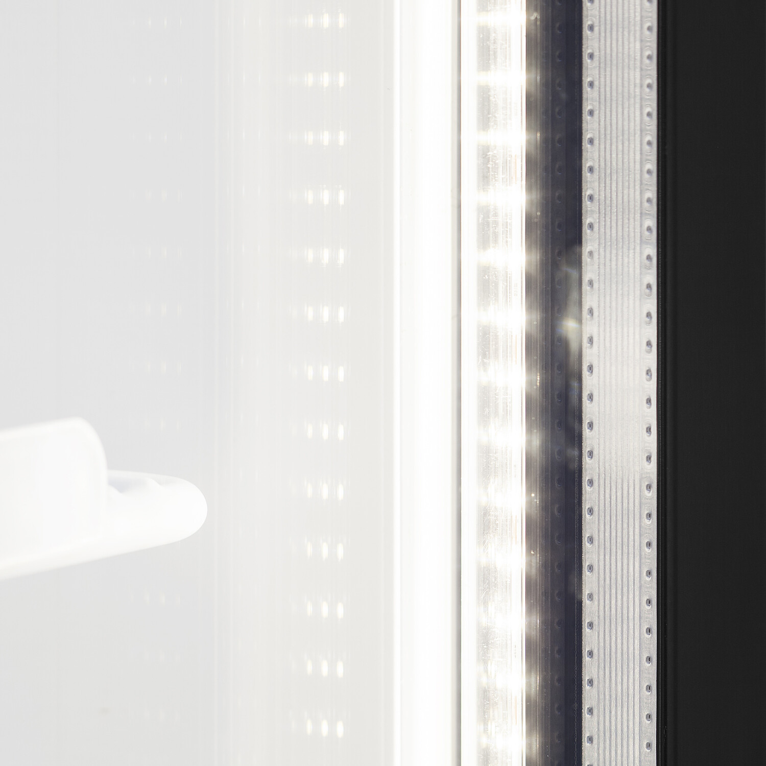 FS er en serie af displaykøleskabe med 2 eller 3 døre, der byder på en god kvalitet til en konkurrencedygtig pris. Vælg mellem et hvidt eller sort kabinet med sorte alu-glasdøre – hængslede eller skydedøre. Hylderne er justerbare, hvilket gør FS serien til en fleksibel køleløsning. Du får en flot produktpræsentation i kombination med et effektivt ventileret kølesystem, der styres via en elektronisk termostat. Flere modeller fås også i en udgave med lystop (FSC serien).