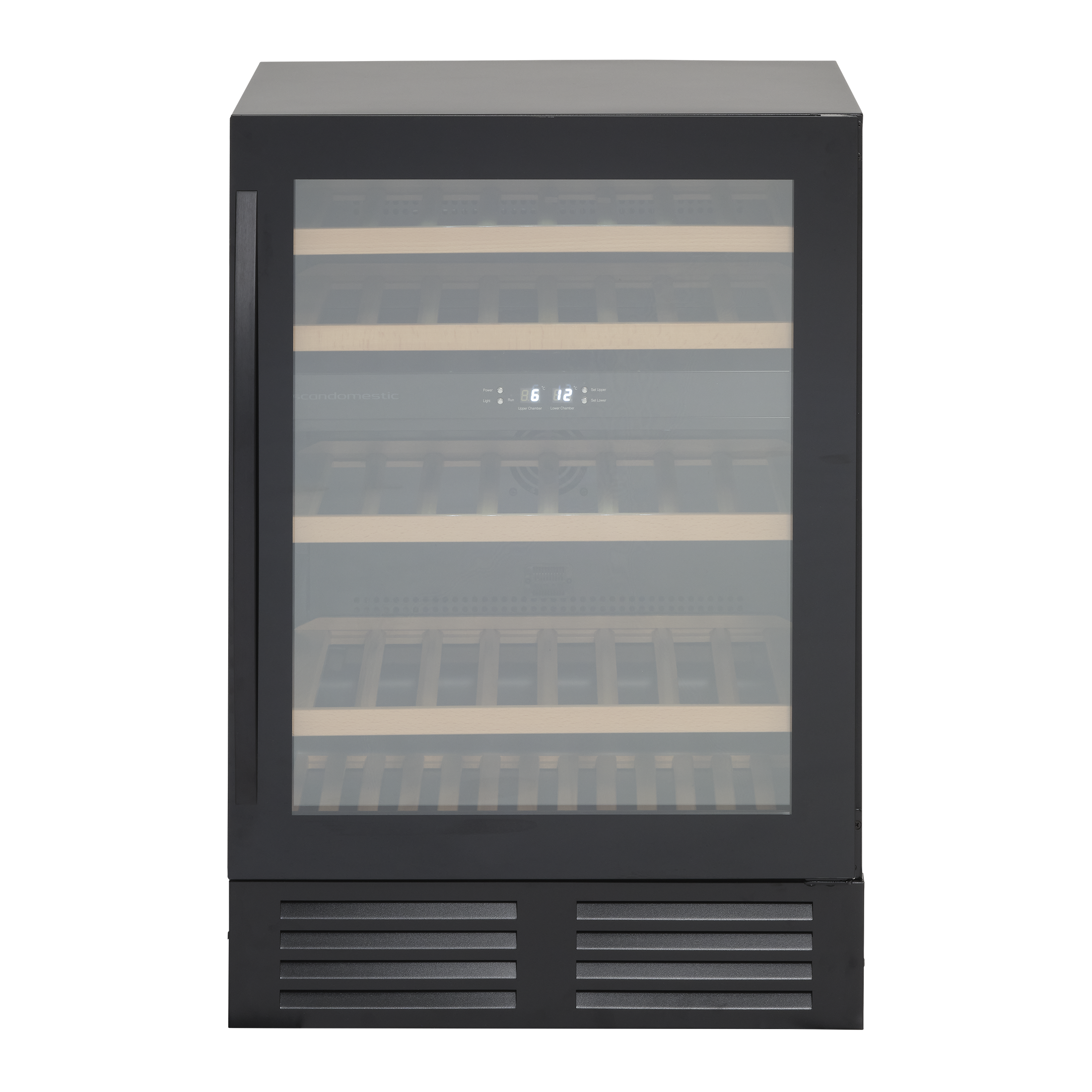 Skabet har et tidløst design, hvor den sorte rammeløse glasdør og det indvendige lys giver skabet et eksklusivt udtryk. Højre hængslet dør med mulighed for dørvending, så det altid er fleksibelt at placere vinskabet i rummet.